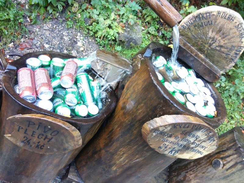 Trošku oříšek pro hodnocení, protože čepované pivko tu nedostanete. Jelikož se jedná o samoobslužný bar, který kdysi zřídili lesáci pro "správné a poctivé lidi", je k dostání pouze pivko v plechu či ve skle. Lesní bar vznikl u pramene, který kaskádovitě stéká do kádí, kde se pivka chladí. Kdo byl někdy táborníkem či čundrákem, ocení tuto romantiku. V nabídce Holba, klasika šerák, k tomu pro odvážné nealkoholiky brusinka&máta, ale mě nejvíce oslovilo nízko alkoholické pivko s horskými bylinami. Chmelový gurmán se ušklíbne, ale v horách jesenických (před očima pláně zarostlé bylinami a travou...) tohle polopivo u mě opravdu zabodovalo! A za 24 Kč plech, který si nemusíte zteplalý výšlapem táhnout v báglu, ale orosený vylovíte z káďe, nádhera...